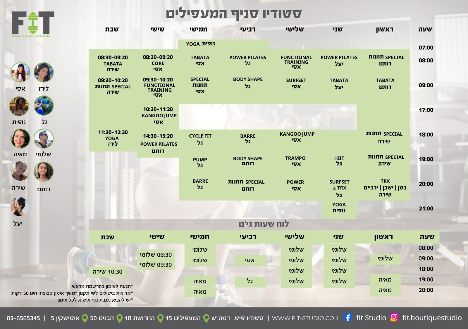 שיעור עיצוב גוף המתמקד בהארכת שרירים ושיפור טווחי התנועה באופן דינאמי וסטטי, תוך שימוש בטכניקות מגוונות ומתקדמות למתיחות. חיזוק בטווח המלא של השריר, תוך דגש על שרירי הליבה וזרימה תנועתית